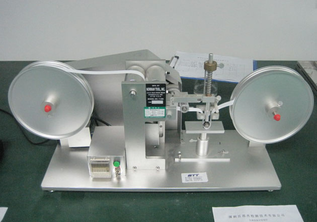 纸带耐磨试验机以专用的纸带作为摩擦介质,以固定的荷重作用于摩擦头,摩擦头透过固定直径的滚轮及定速马达驱动回转的纸带将力持续施于试样表面,直到见到表面底材或者达到特定的磨损程度,通过计数器显示的马达回转次数来评价试样耐摩性能。
